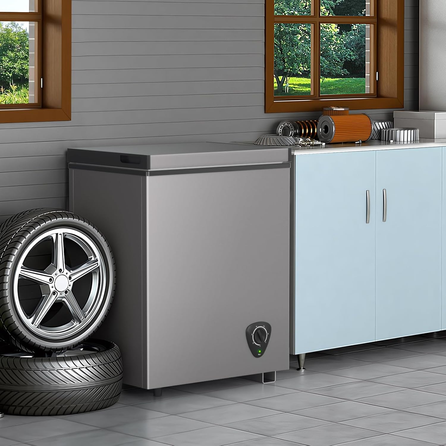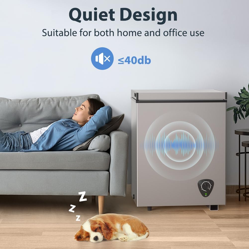 Chest Freezer,3.5 Cu Ft Compact Deep Freezer with Low Noise&Energy Saving, 7 Gears Temperature Control,Grey